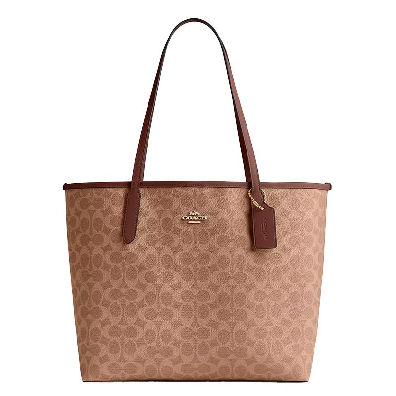 BOLSA DE OMBRO FEMININA COACH SIGNATURE CITY TOTE CV976 TAN/BROWN