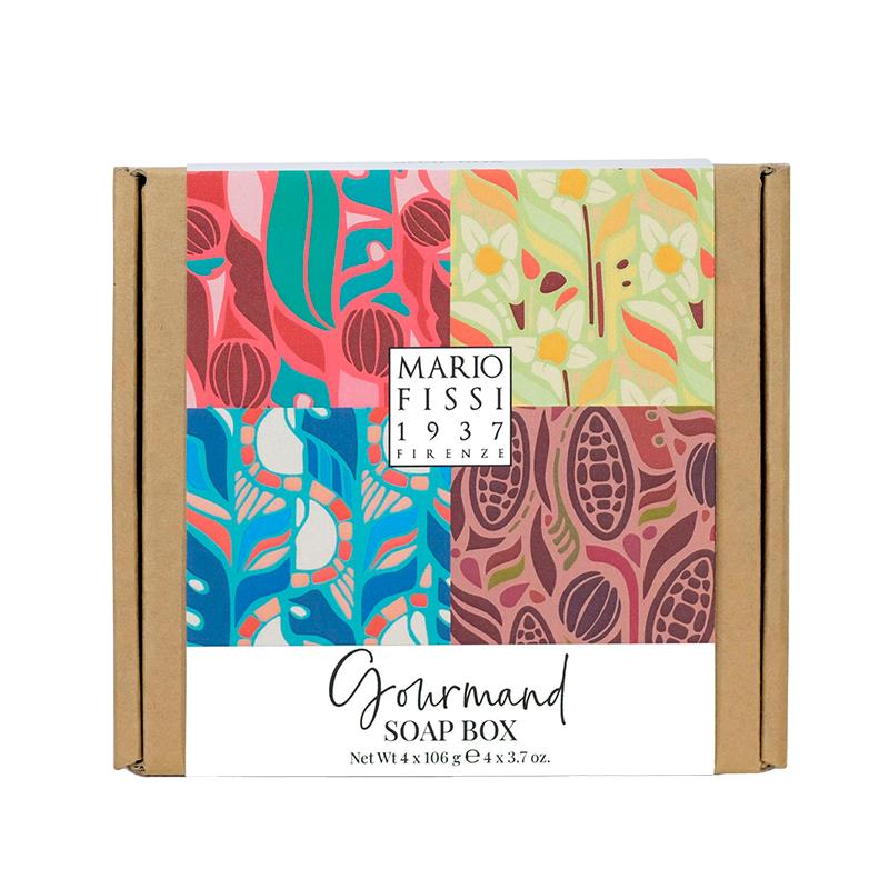 CAIXA DE SABONETES MARIO FISSI GOURMAND AMARENA/VANIGLIA/ZUCCHERO/CIOCCOLATO 4X106G