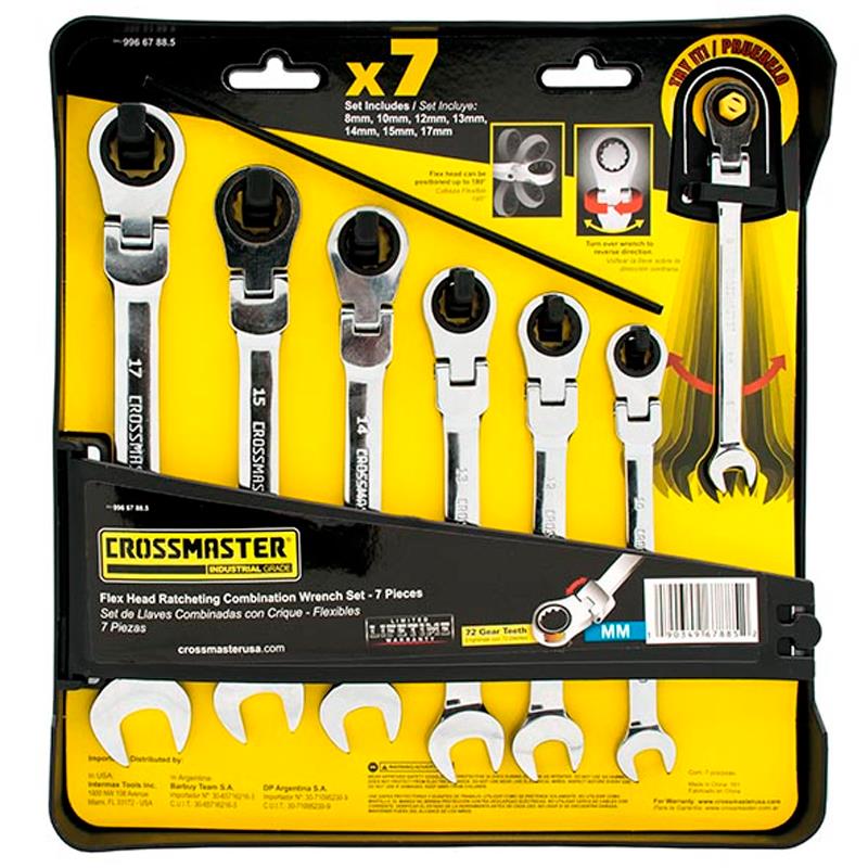 CONJUNTO DE CHAVES COMBINADAS COM CATRACA FLEXIVEL 3/4, 5/8, 9/16, 1/2, 7/16, CROMO VANADIO CROSSMASTER