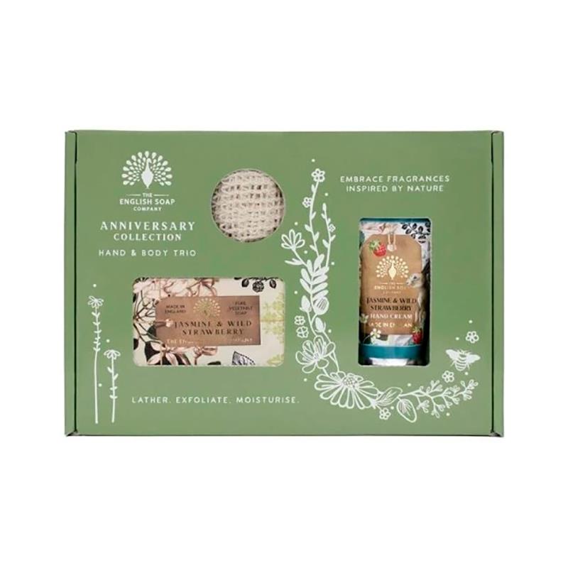 KIT CREME DE MAOS CHRISTINA MAY SABONETE EM BARRA SACO DE SISAL JASMINE WILD STRAWBERRY 190G