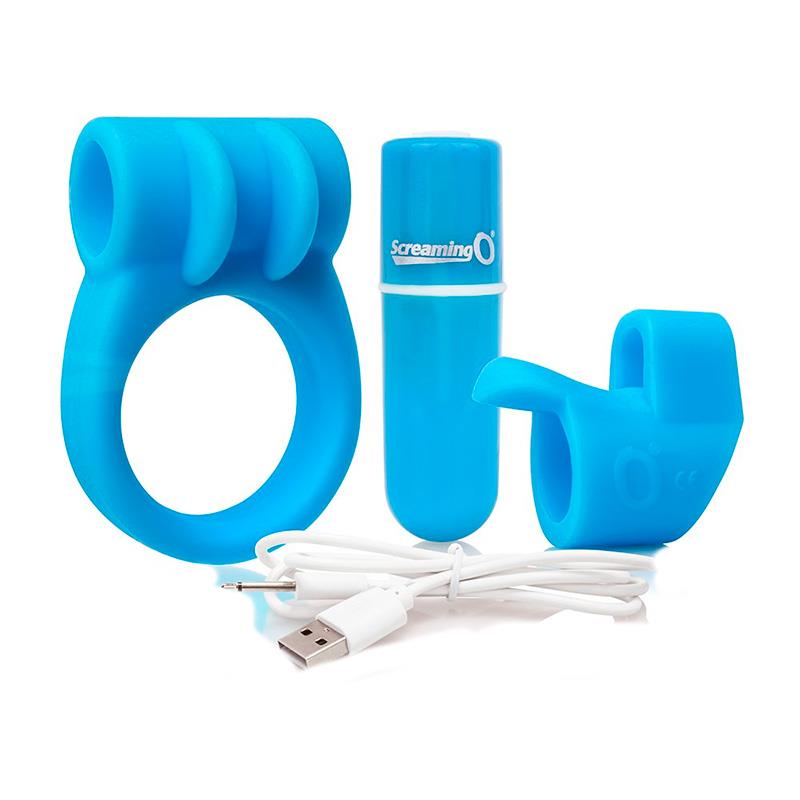 MASSAGEADOR SCREAMING O SEXUAL ANEL VIBRADOR COMBO BETTER SEX KIT ACKBU101 AZUL
