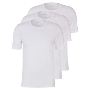 KIT CAMISETA MASCULINA HUGO BOSS ADULTO TSHIRT RN 3 UND CLASSIC MC BRANCO AZUL ESCURO E PRETO 10243514 01 TAM M