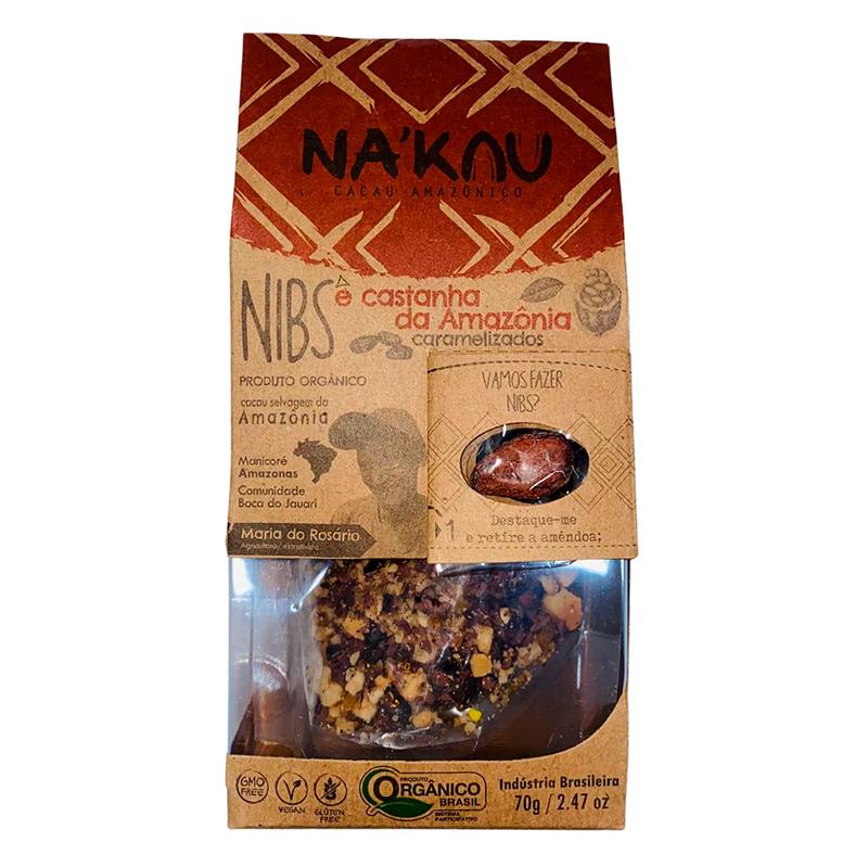 NIBS NAKAU DE CACAU CARAMELIZADA COM CASTANHA 70G