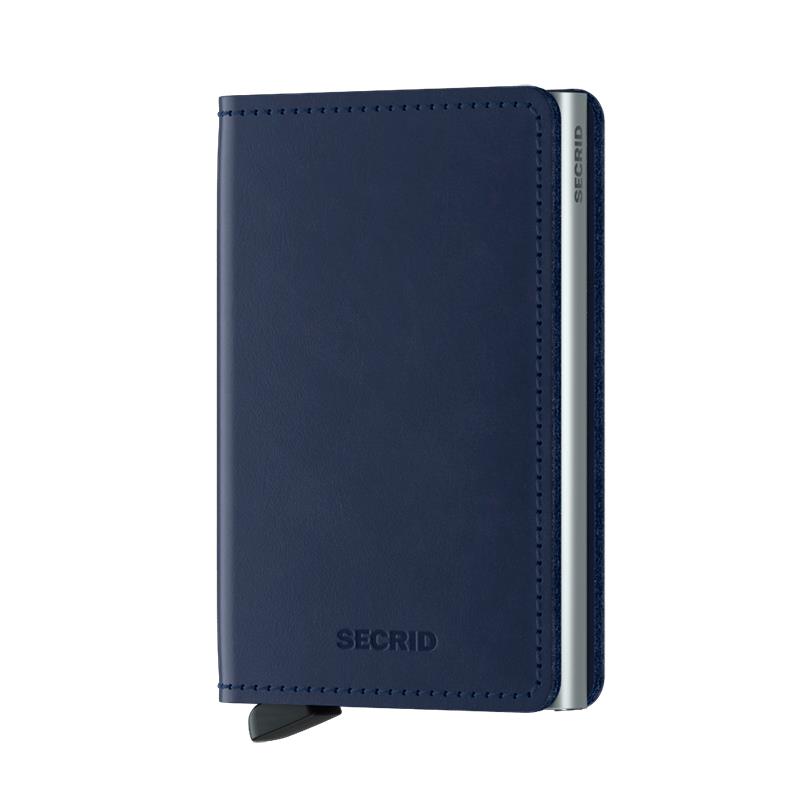 MINI CARTEIRA SECRID UNISSEX DE COURO VINTAGE BLUE 10 CARTOES E 8 NOTAS AZUL