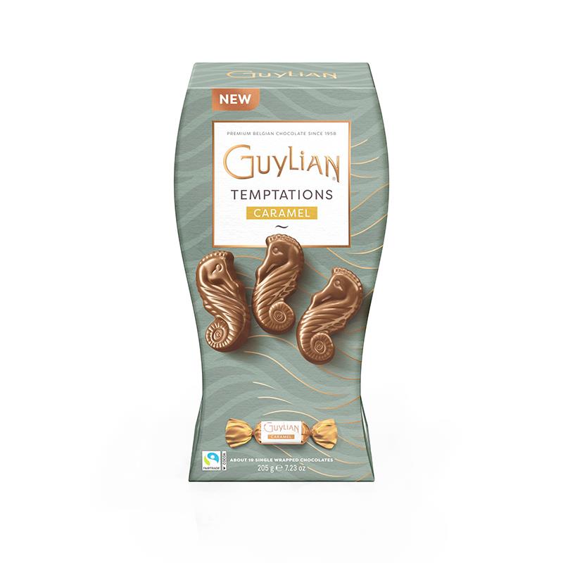 TRUFAS DE CHOCOLATE GUYLIAN CAVALO MARINHO TEMPTATIONS CARAMELO CAIXA 10X205G
